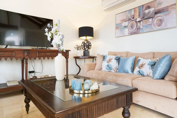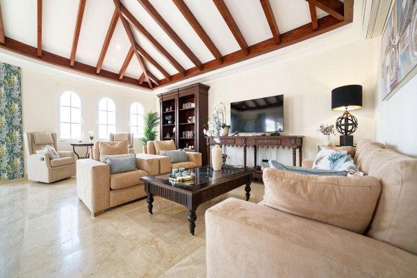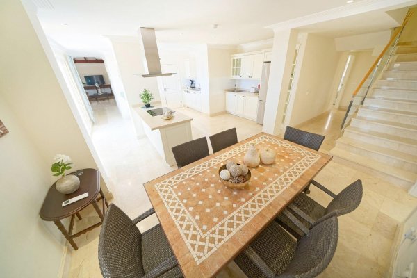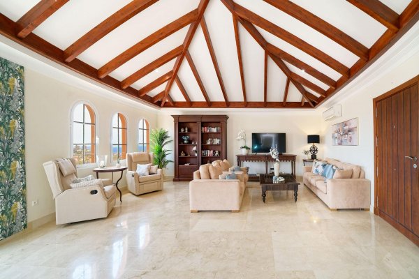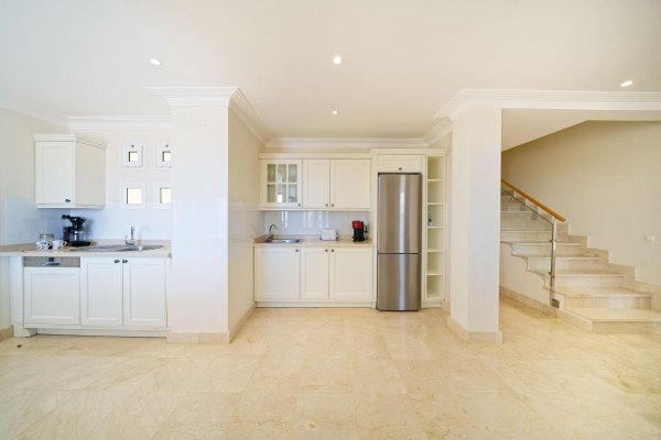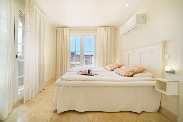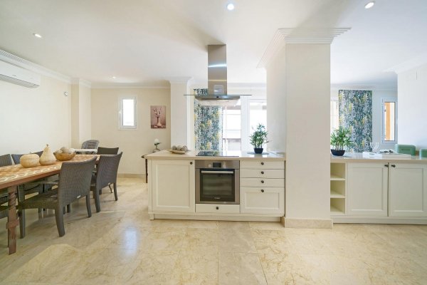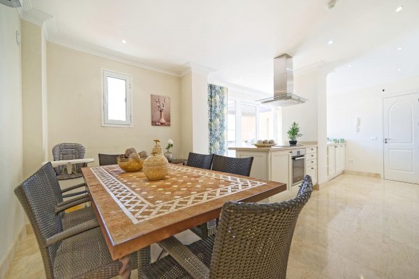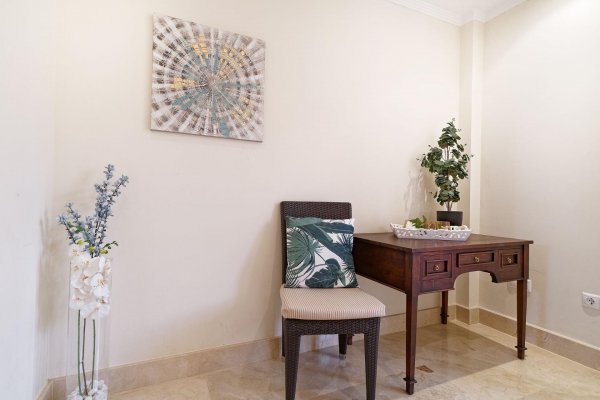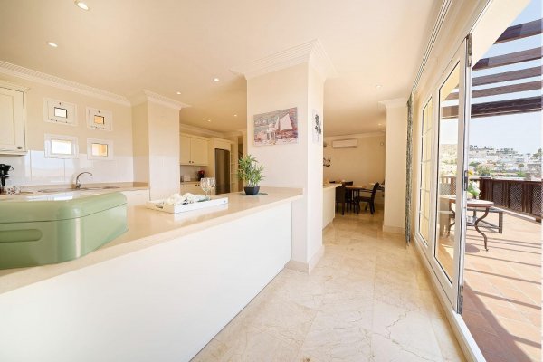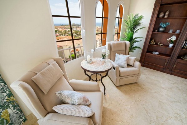 | Meget attraktiv pris for den største penthousetypen i populære Monte Carrera! Beliggenhet: Leiligheten ligger i toppetassjen av blokk 1 og har heisadkomst fra garasjekjelleren. Denne delen av komplekset er mest populær og har kortest vei ned til sjøen og sentrum (ca 5-10 minutters gange). Havutsikt fra terrassen, stuen og takterrassen. Ca 5-10 min. gange til sentrum av Arguineguín hvor man finner alle slags butikker, restauranter, caféer, legesenter, apotek, kommunehus mv. Flere vakre strender i gangavstand, inkl. Anfi del Mar med hvit, karibiskinspirert skjellsand. Fjelløyper i nærheten med enkel adkomst. Meget god beliggenhet i et stille område uten gjennomfartstrafikk. Arealbeskrivelse: Leiligheten er ca 167 m2 konstruert. Med terrasse og takterrasse er den tilsammen ca 250 m2. Innhold: Boligen har to innganger; - den ene går inn til stuen og den andre går inn til en forgang (hvor vaskemaskinen er plassert i et innebygd skap). Denne leder så direkte inn til kjøkkenavdelingen. Marmorgulv og vegger i naturhvit. Kjøkkenet er gigantisk med en praktisk innredning. Det er fullt utstyrt med alt av hvitevarer; herunder oppvaskmaskin, kjøleskap med frysedel, vitrokeramisk topp med 4 kokeplater, kjøkkenvifte etc. Kjøkkenet har over-og underskap med en enorm lagringskapasitet og store arealer for matlaging. Leiligheten tilbyr dessuten anleggets største stue med lekre, brune spanskinspirerte takbjelker. Det er høyt under taket og de lyse veggene, marmorgulvet og det spesielle listverket skaper en tidløs eleganse. Gjestetoalett. I fra de vakre, buede vinduene i oppholdsrommet har man utsikt over fiskerlandsbyen, fjellene og havet. Meget romslig, østvendt terrasse med sol fra tidlig morgen. Utearealet er så stort at det har plass til flere møbelgrupper og solsenger. Her kan du la deg fascinere av Gran Canarias vakreste soloppganger og nyte solen til utover ettermiddagen. Terrassen ligger ofte i le for eventuell vind. Fremragende kveldsutsikt når lysene tennes i landsbyen. Ytterligere uteareale på taket. Tilgang til den private takterrassen fra leiligheten gjennom en innvendig trapp. Her har man solen enda lengre utover og veggene skjermer ekstra godt mot eventuell vind. Meget usjenert. Boligen tilbyr videre 3 romslige soverom med innebygde garderobeskap. 1 av rommene har direkte utgang til terrassen. 2 har fransk balkong for ekstra lys og lufting. Alle 3 soverommene har direkte tilgang til bad (2 av soverommene deler bad.) Master bedroom har eget bad med badekar og bidet. Det delte badet har både badekar og dusj. Begge har gulvvarme. Leiligheten selges møblert. Diverse planter/blomster hører til megler. AC-anlegg til ca 7.000 euro av nyere dato, kjøleskap og varmtvannstank. Parkeringsplass og bod i garasjekjelleren må kjøpes til for et pristillegg på 17.500 euro. Registrert på egne gårds-og bruksnummer. Utleie: Nåværende eier har inngått diverse korttidsleiekontrakter med meget gunstige leieinntekter. Kontraktene kan enten taes over eller så kan kjøper betale inn et reservasjonsbeløp nå og restbeløpet så fort den siste leiekontrakten er avholdt. Fellesanlegget: Heis fra garasjeanlegget og opp til leiligheten. Oppvarmet svømmebasseng for barn og voksne. Kamera på alle innfartsårer til anlegget. Vakttjeneste. Resepsjonstjeneste. Felleskostnadene inkluderer WIFI. Internasjonale TV-kanaler kan sees ved å koble til TV-boks e.l. Plandokumentet kan være unøyaktig. Kjøpsomkostninger er ikke inkludert i prisen. Disse omfatter dokumentavgift på 6,5% av kjøpesummen for bruktkjøp, notar-, register- og advokathonorar. Gjennomsnittlig ca 8-10% av kjøpesummen for bruktkjøp. Kjøper vil få en detaljert oversikt. Eiendommen selges som den er. Det tas forbehold om endringer, feil og mangler vedrørende informasjon gitt om eiendommen samt at den kan trekkes fra markedet uten forhåndsvarsel. |