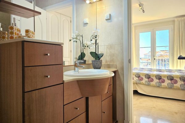 | Beliggenhet: Leiligheten har rullestolvennlig adkomst og ligger i nest øverste etasje av blokk 1. Heisadkomst fra garasjekjelleren. Denne delen av komplekset er mest populær og har kortest vei ned til sjøen og sentrum. Havutsikt fra terrasse, stue og soverom. Ca 5-10 min. gange til sentrum av Arguineguín med alle slags butikker, restauranter, caféer, legesenter, apotek mv. Flere vakre strender i gangavstand, inkl. Anfi del Mar med hvit, karibiskinspirert skjellsand. Fjelløyper i nærheten med enkel adkomst. Meget god beliggenhet i et stille område uten gjennomfartstrafikk. Sammendrag: Leiligheten består av åpen stue-og kjøkkenløsning, 2 soverom (ensuite), 2 bad, toalett og romslig terrasse. Garasjeplasss og bod i kjelleren på hhv 12 m2 og 9,39 m2 (konstruert overflate) må kjøpes til for et pristillegg på 20.000 euro. Ønsket overtakelse: Midten av februar 2026. Innhold: Marmorgulv og naturhvite vegger. Lysrik og elegant leilighet. Pent brukt. Ventiler i yttervegger for ekstra luftsirkulasjon (stue og soverom). Downlights. Solid sikkerhetsdør i mørkt heltre. 2 doble garderobeskap i gangen hvor stor varmtvannstank er plassert. Perfekt for oppbevaring av vaskeustyr, yttertøy etc. Skoskap. Helspeil. Gjesteotalett til høyre. Flislagt i beige. Baderomsmøbel med speil over. Vaskemaskin. Gulvvarme. Hovedsoverommet ligger rett frem i gangen og er lyst og romslig. Franske balkongdører gir godt med ventilasjon og lysinnslipp. Havutsikt. Vindu også mot terrassedelen. Rommet er møblert med dobbeltseng, nattbord, integrert garderobeskap og hyller. AC. Eget bad i beige farger med baderomsmøbel, speil og badekar. Gulvvarme. Åpen stue-og kjøkkenløsning med 3 vinduer i stuen, terrassedører og 1 vindu i kjøkkenavdelingen. Store vindusflater og sydvendt retning gjør at leiligheten fremstår særs lysrik. Utsikten innenifra er eksotiske palmer, Atlanterhavet, vakker bebyggelse og fjellene mot øst. Stuen er møblert med sovesofa, puff, bord, TV-bord og skap. AC. Det romslige kjøkkenet er U-formet og tilbyr alt av hvitevarer i kvalitetsmerket Bosch; Kjøleskap med frysedel, stekeovn, avtrekksvifte, vitrokjeramisk kokeplate (4) og integrert oppvaskmaskin. Direkte utgang til den fantastiske terrassen på hele 25 m2 med panoramautsikt fra øst til vest. Utsikten fremstår som et maleri og inntrykkene forsterker seg ytterligere fra det man ser innenifra: Blått hav, grønne sydenspalmer, imponerende arkitektur og fjell i vakker kontrast med himmelen. Terrassen er takbelagt. Dens sydvendte retning bidrar likevel til meget gode solforhold på uteområdet. Møblement: Stor spisestue for 6 personer i rottingstil og to godstoler med fotstøtte. Avlastningsbord. Ytterdelen til AC er praktisk gjemt på et innhuk av terrassen langs de 3 vinduene utenfor stueavdelingen. Soverom nummer 2 ligger i tilknytning til stuen og er per i dag innredet med sovesofa, innebygd garderobeskap og hylle. Vindu. AC. Eget bad ensuite, også flislagt i beige. Dette er innredet med baderomsmøbel og speil samt dusj. Gulvvarme også her. Boligen selges møblert. Unntatt: personlige ting og noen dekorgjenstander som tilhører megler. Fellesanlegget: Heis fra garasjeanlegget til leiligheten. Oppvarmet svømmebasseng for barn og voksne. Kamera på alle innfartsårer til anlegget. Vakttjeneste. Resepsjonstjeneste. Felleskostnadene inkluderer WIFI. Internasjonale TV-kanaler kan sees ved å koble til TV-boks e.l. Plandokumentet kan være unøyaktig. Kjøpsomkostninger er ikke inkludert i prisen. Disse omfatter dokumentavgift på 6,5% av kjøpesummen for bruktkjøp, notar-, register- og advokathonorar. Gjennomsnittlig ca 8-10% av kjøpesummen for bruktkjøp. Kjøper vil få en detaljert oversikt. Eiendommen selges som den er. Det tas forbehold om endringer, feil og mangler vedrørende informasjon gitt om eiendommen samt at den kan trekkes fra markedet uten forhåndsvarsel. |