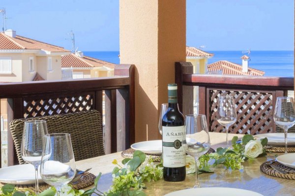 SYDVENDT HJØRNELEILIGHET I MONTE CARRERA MED BILLEDSKJØNN HAVUSTIKT FRA ØST TIL VEST. GARASJEPLASS OG BOD. SJELDEN MULIGHET! |