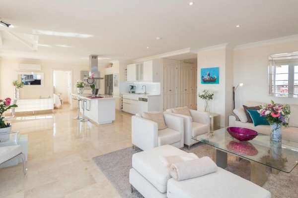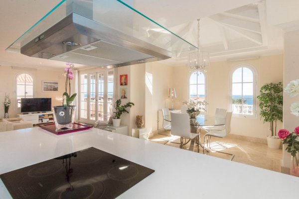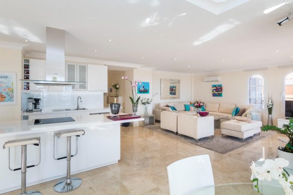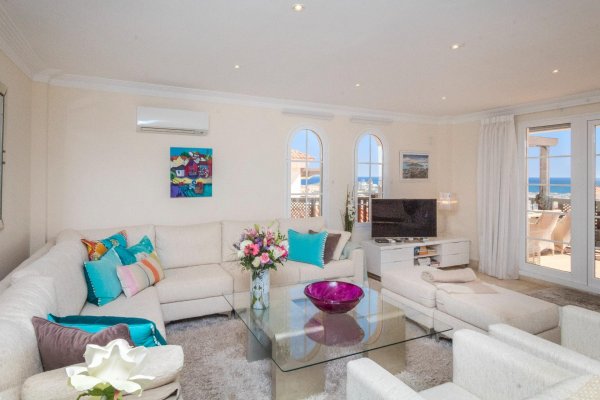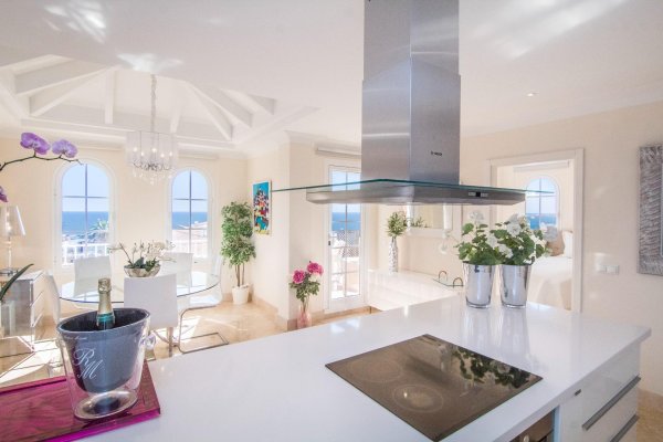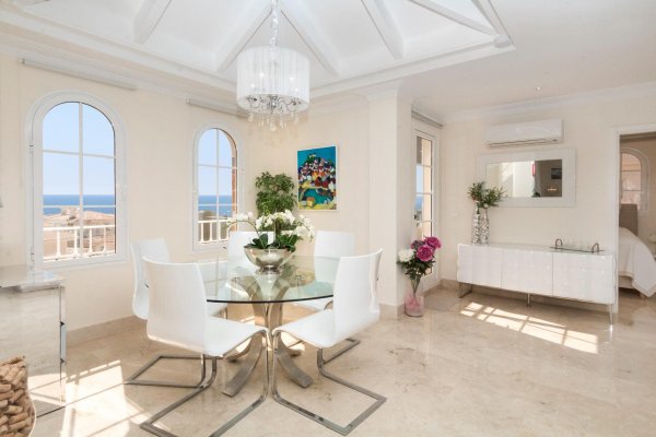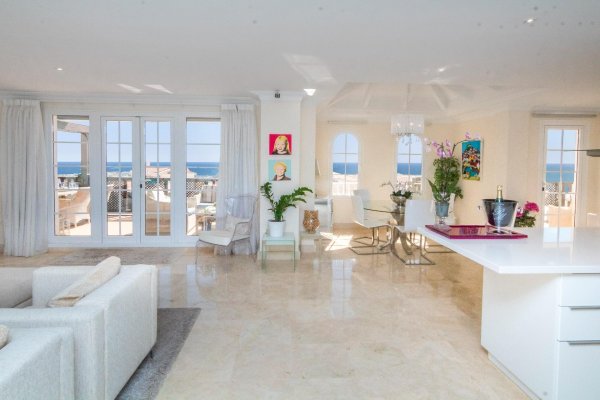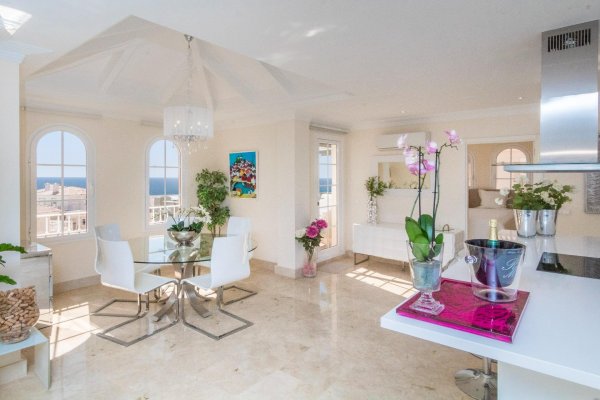 VURDERES SOLGT: UNIK OG ELEGANT LUSKSUSLEILIGHET PÅ TILSAMMEN 197 M2 I TOPPETASJEN AV MONTE CARRERAS BLOKK 2 (MOT SJØEN) MED PANORAMISK HAVUTSIKT. OPPVARMET BASSENG, GARASJEPLASS OG BOD. |
