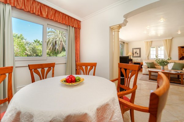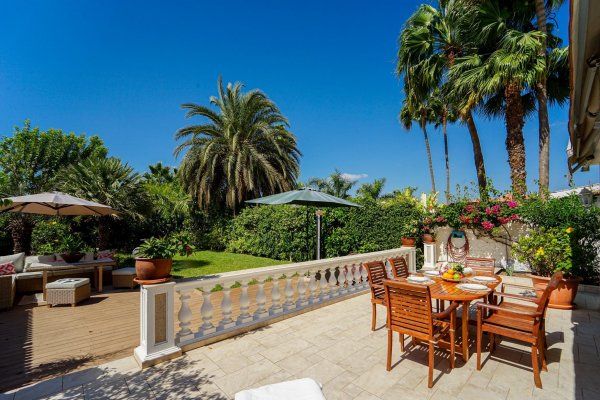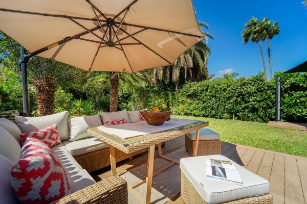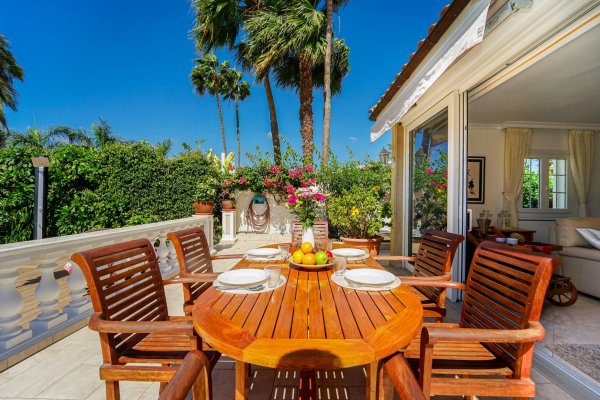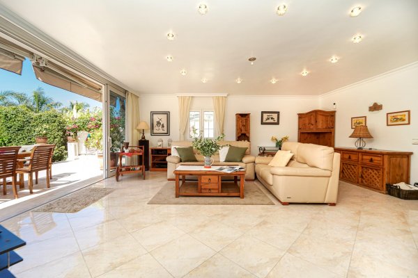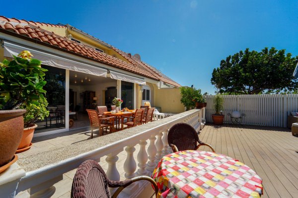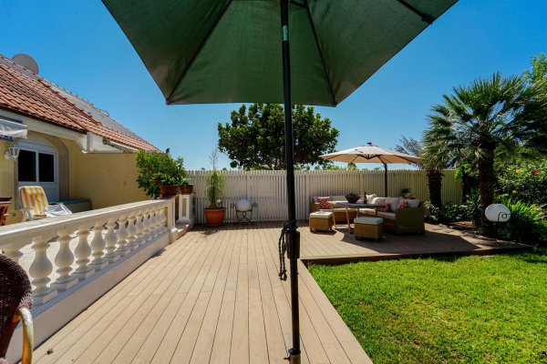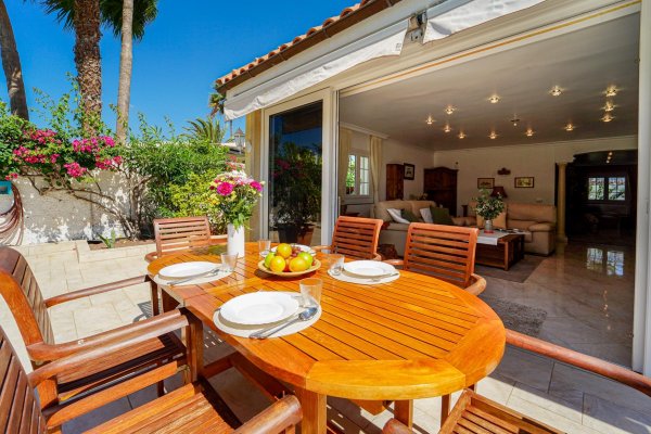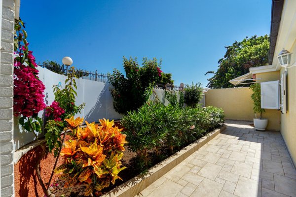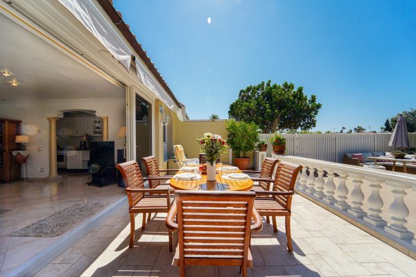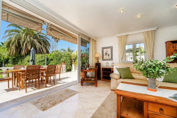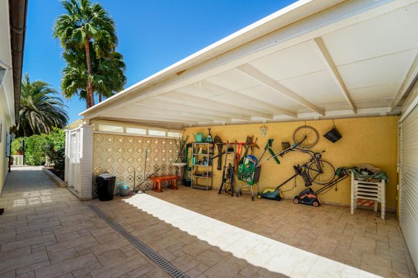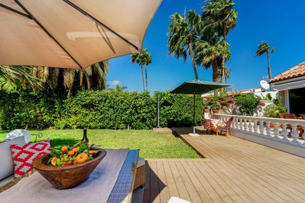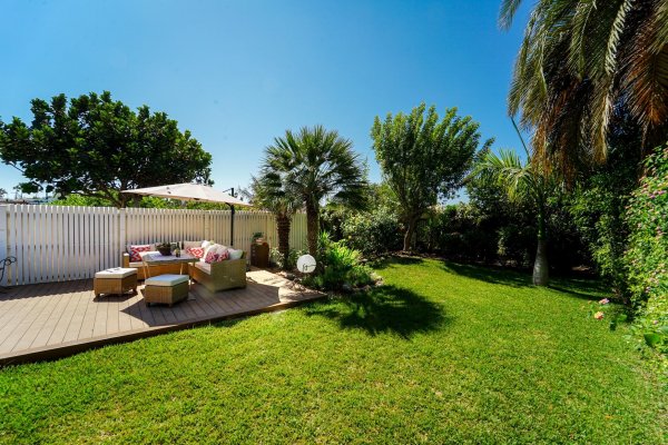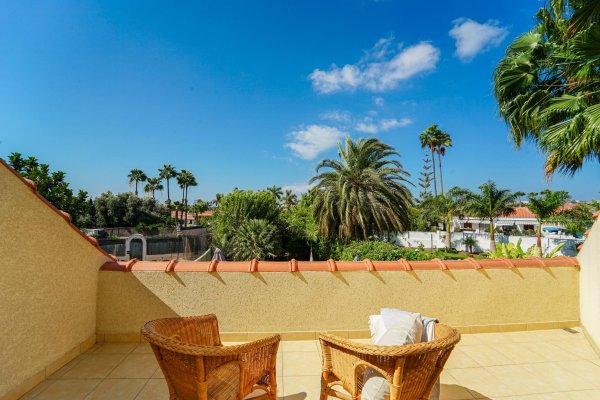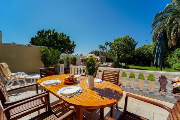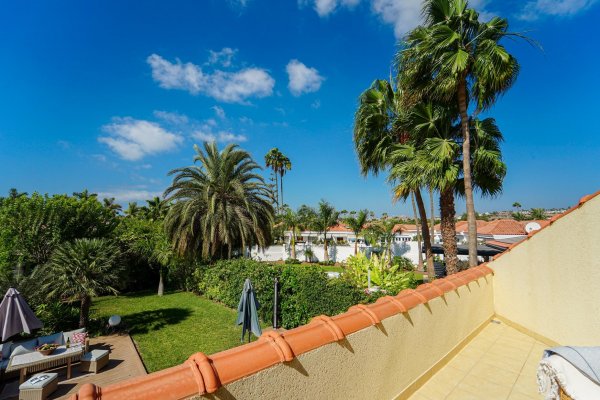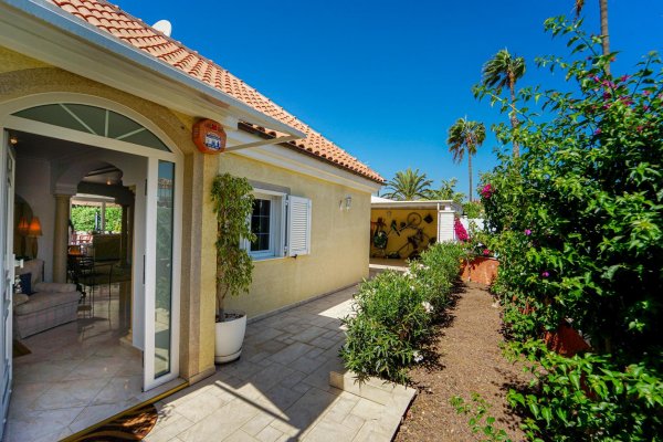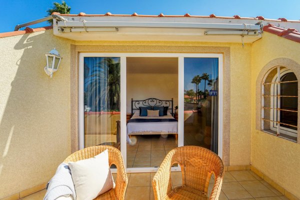 Discover this exclusive semi-detached bungalow, a property that combines modern design, privacy, and high-quality finishes. Spread over two floors, it offers a unique living experience. It features a spacious parking area for two vehicles, a pristine garden, and large terraces, perfect for enjoying the year-round pleasant weather. On the ground floor, the design emphasizes brightness and a seamless connection to the outdoors. The main living room, with an elegant sliding glass door, opens onto the main terrace, creating a continuous space for relaxation and socializing. The home is equipped with automatic awnings, climate control, Swarovski crystal lighting, and energy-efficient technology, including solar panels and wall insulation, maximizing comfort while minimizing energy consumption. The exterior includes a garden with a sophisticated chill-out terrace and a lighting system that enhances its charm, making it the perfect setting for outdoor evenings. On the upper floor, the master bedroom provides a private retreat with an en-suite bathroom, a spacious walk-in closet, and a terrace overlooking the garden, ideal for moments of peace and tranquility. Located in the prestigious Campo Internacional area, this bungalow combines privacy with proximity to services such as Holiday World Maspalomas, golf courses, and the iconic Maspalomas Dunes and Playa del Inglés. Its excellent motorway connection ensures easy access to all parts of the island. Distribution The property is distributed over two floors. The ground floor has an entrance hall, parking space for 2 vehicles, large terrace and garden. The interior has a large entrance hall, a double bedroom, a bathroom, a spacious living room with access to the terrace, dining room and separate kitchen with pantry. Upstairs there are two double bedrooms, each with its own bathroom. In addition, the master bedroom has a dressing room and terrace. Surface area: Ground floor 115 m² + Upper floor 70.5 m² + garage and laundry room 38.2 m². Legal notice The published floor plan should be considered as an orientative sketch, not as an exact reflection of the physical reality of the property, and there may be inaccuracies in the layout of the plan and in the measurements. Price does not include taxes and expenses of the sale. The most important are: Transfer Tax (6.5%), as well as the Notary, Land Registry and administrative fees. Generally we have to calculate here 8-10% of the price, although we will give you a detailed estimate for each specific property you are interested in. This property is built on land classified for tourist use, however the building is effectively used for residential purposes, and this use is considered consolidated. The plot area registered in the land register is 260 m2. The garden currently occupies an additional 200 m2, which corresponds to a green area for municipal public use, which could be reclaimed by the municipal authorities. |
