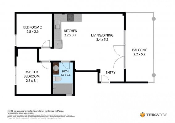 | Dormitorios:2 | M2 Construidos:52 | |
