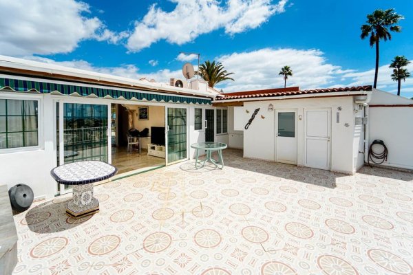 | Se ofrece a la venta un bungalow adosado situado en el centro de Playa del Inglés, en la Avenida de Gran Canaria, dentro del complejo residencial Club 25. El complejo cuenta con una amplia piscina comunitaria y zona de solárium. La vivienda se encuentra en buen estado de conservación y dispone de techos altos que favorecen una temperatura agradable en el interior. También está equipada con aire acondicionado en el salón y en los dormitorios, lo que asegura confort durante todo el año. Uno de los principales atractivos de la propiedad es su amplia terraza privada, que garantiza independencia y privacidad respecto a las viviendas colindantes, y que además ofrece varios espacios habilitados para almacenaje. En el interior, el bungalow dispone de dos dormitorios con baño en suite, una cocina independiente completamente equipada y un salón luminoso con salida directa a la terraza. Como valor añadido, cuenta con un aseo adicional en la zona exterior, muy práctico para el uso de la terraza. Esta última recibe sol durante todo el día y permite disfrutar de vistas hacia el mar y las dunas de Maspalomas. Playa del Inglés es una de las zonas más demandadas de Gran Canaria, con más de tres kilómetros de playa y una amplia oferta de servicios, restauración y actividades de ocio. Distribución La propiedad se distribuye en un amplio salón, cocina independiente, dos dormitorios dobles, dos baños y amplia terraza con aseo y trastero. Aprox. 85 m² (46.58 m² registrados + ampliación de aprox. 38 m²) + terraza de 54 m² Aviso legal NOTA: La ampliación (cocina y salón) de aprox. 38 m² fue construida originalmente sin licencia de obras, estando no obstante consolidada por prescripción urbanística. Consecuentemente, obras futuras en este inmueble quedan limitadas a mantenimiento, conservación o sustitución de elementos existentes. No se concederá licencia para más ampliaciones, mejoras ni adición de nuevos elementos constructivos. El plano publicado debe ser considerado como croquis orientativo, no como reflejo exacto de la realidad física del inmueble, pudiendo existir inexactitud en el trazado del plano y en las medidas. Precio no incluye impuestos y gastos de la compraventa. Los más importantes son: Impuesto de Transmisiones Patrimoniales (6,5%), así como los honorarios de Notario, Registro de la Propiedad y gestoría. Generalmente debemos calcular aquí un 8-10% del precio, aunque le entregaremos una estimación detallada para cada propiedad concreta por la que Vd. se interese. Este inmueble está construido sobre suelo calificado para uso turístico, no obstante el edificio se destina efectivamente a uso residencial, considerándose consolidado dicho uso. |