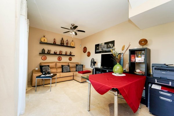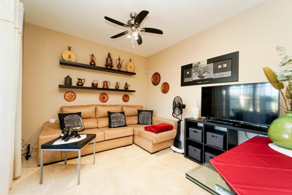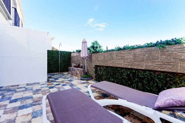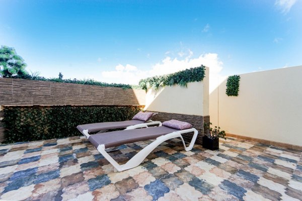 | Esta cuidada casa adosada de dos plantas ofrece una vivienda donde el confort, la tranquilidad y la calidad de vida son protagonistas. La propiedad se encuentra en la tercera planta del bloque C, el más tranquilo del complejo y el que ofrece las mejores vistas, con una ubicación realmente privilegiada dentro del edificio. Su excelente situación permite disfrutar de una de las terrazas más grandes de toda la planta, un espacio que ha sido cuidadosamente reformado para aprovecharlo al máximo. La vivienda cuenta con dos amplios dormitorios y dos baños completos, lo que la hace ideal tanto como residencia habitual como para disfrutarla como vivienda vacacional cómoda y práctica. La cocina es funcional y está pensada para el día a día, y la propiedad se vende completamente amueblada, lista para entrar a vivir y comenzar a disfrutar desde el primer momento. El corazón de la vivienda es su espectacular terraza, privada y protegida de miradas, que ofrece abundante luz natural y un agradable sol de tarde, con la posibilidad de elegir entre sol y sombra según el momento del día. Gracias a su generoso tamaño, se ha instalado una pérgola que permite disfrutar de agradables zonas de sombra, así como una práctica ducha exterior ideal para refrescarse en los días más cálidos. Este espacio exterior se convierte en un auténtico salón al aire libre, perfecto tanto para reuniones sociales como para momentos de descanso y relax. La casa forma parte de un complejo residencial tranquilo y bien cuidado, con una atractiva zona de piscina comunitaria ideal para disfrutar del clima. La comodidad está presente en todos los detalles, con acceso fácil mediante ascensor y la posibilidad de alquilar una plaza de garaje para quienes lo deseen. Su ubicación en Gran Canaria permite disfrutar de uno de los climas más valorados del mundo, con temperaturas suaves durante todo el año, y con cercanía a playas, restaurantes, servicios y zonas de paseo, ofreciendo el equilibrio perfecto entre vida relajada y comodidad diaria, en una vivienda que invita a disfrutar y a sentirse en casa. Distribución La vivienda se distribuye en dos plantas. En la planta baja se encuentra la terraza, el salón, cocina independiente, un baño y un dormitorio. La planta alta se compone de dos dormitorios y un baño. Aviso Legal El plano publicado debe ser considerado como croquis orientativo, no como reflejo exacto de la realidad física del inmueble, pudiendo existir inexactitud en el trazado del plano y en las medidas. Precio no incluye impuestos y gastos de la compraventa. Los más importantes son: Impuesto de Transmisiones Patrimoniales (6,5%), así como los honorarios de Notario, Registro de la Propiedad y gestoría. Generalmente debemos calcular aquí un 8-10% del precio, aunque le entregaremos una estimación detallada para cada propiedad concreta por la que Vd. se interese |