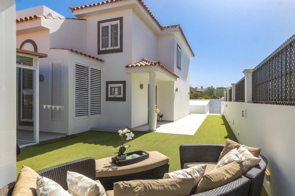 | Ubicación: La casa unifamiliar se encuentra a unos 10 minutos a pie del centro de Meloneras y a 3 minutos del paseo marítimo. Está próxima a varios centros comerciales que cuentan con restaurantes de renombre y tiendas exclusivas. Se ubica en una zona segura y tranquila, con una amplia oferta de servicios. En los alrededores destacan hermosas playas, como la extensa playa de Maspalomas con sus impresionantes dunas y la playa de Meloneras. Medidas: Las dimensiones indicadas en el anuncio corresponden a las reales, según el arquitecto que redactó el plano. La propiedad está inscrita en el Registro de la Propiedad con una superficie construida de 253,12 m² y una parcela de 483 m². No se ha solicitado autorización a las autoridades en relación con las ampliaciones, cambios de distribución y la piscina. Introducción: Lujosa villa lista para entrar a vivir, con soluciones modernas e inteligentes. Fue completamente renovada hace unos 2 años. Cuenta con amplios ventanales que aportan gran luminosidad, luz indirecta en toda la casa, aire acondicionado en todos los salones y dormitorios, persianas automáticas de aluminio en la planta principal y ventanas y puertas con persianas ajustables. Dispone además de videoportero con conexión wifi. La vivienda se distribuye en 3 plantas y cuenta con un total de 5 dormitorios, 3 baños completos y 1 aseo, 2 salones, varios trasteros, garaje triple y sala de máquinas. Distribución de la vivienda: Planta principal: Salón-comedor abierto y luminoso de unos 47 m². Amplia cocina equipada con electrodomésticos exclusivos e innovadores, con excelente capacidad de almacenamiento. Sala de TV (chillout) de aproximadamente 50 m², con espacio para una mesa de comedor para 24 personas y un amplio conjunto de sofás. Aseo de invitados. Terraza delantera muy espaciosa con piscina privada climatizada mediante cubierta de paneles solares. Destaca la fantástica iluminación exterior tanto de la piscina como de la terraza, que rodea toda la casa, ofreciendo espacio suficiente para diferentes ambientes con sofás, tumbonas, mesas de comedor, etc. Primera planta: Tres amplios dormitorios con armarios de gran capacidad (uno de ellos actualmente utilizado como despacho). Dos de los dormitorios cuentan con balcón propio, con vistas a la piscina, al hotel Villa del Conde y vistas parciales al mar. La iluminación indirecta de la piscina y el espectáculo de luces del hotel generan un ambiente único al atardecer. Dispone de dos baños grandes, modernos y luminosos. Sótano: En esta planta se encuentran dos estancias amplias actualmente utilizadas como dormitorios (según normativa, este espacio debería destinarse a garaje/almacén). Dispone además de un baño moderno de buen tamaño, varios trasteros, sala de máquinas y garaje triple. Otros datos: La propiedad se vende sin amueblar. Los electrodomésticos y las instalaciones fijas están incluidos en el precio. No existen gastos de comunidad. Estándar: Muy buen estado. Lista para entrar a vivir. Información adicional: El plano y sus dimensiones pueden ser orientativos y únicamente tienen carácter ilustrativo. Los gastos de compraventa no están incluidos en el precio. Estos incluyen el impuesto de transmisiones patrimoniales (ITP) del 6,5%, así como los gastos de notaría, registro de la propiedad y abogado. El comprador recibirá una descripción detallada. La propiedad se vende ?como cuerpo cierto?. Se encuentra construida sobre suelo turístico, de uso turístico, con sujeción a condiciones y limitaciones específicas. La información sobre la propiedad está sujeta a posibles errores, modificaciones y/o retirada sin previo aviso. |